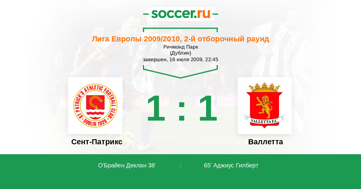 Протокол матча Сент-Патрикс против Валлетта