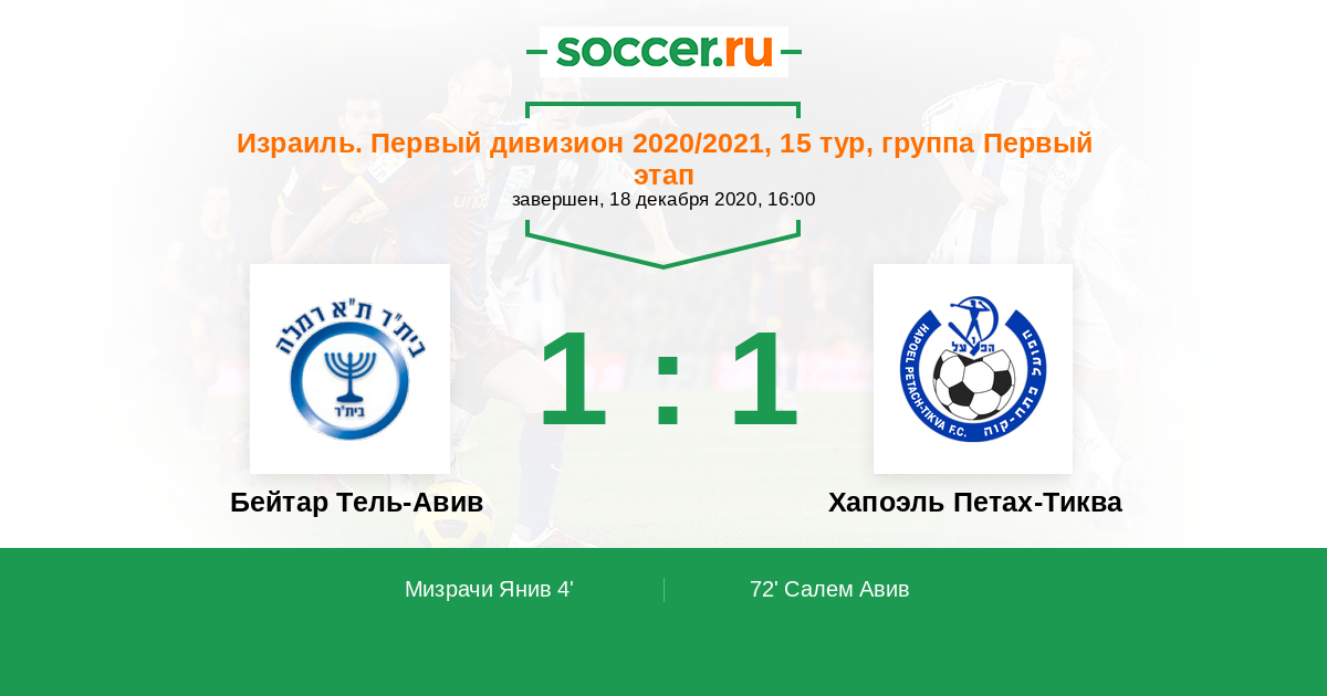 Протокол матча Бейтар Тель-Авив против Хапоэль Петах-Тиква
