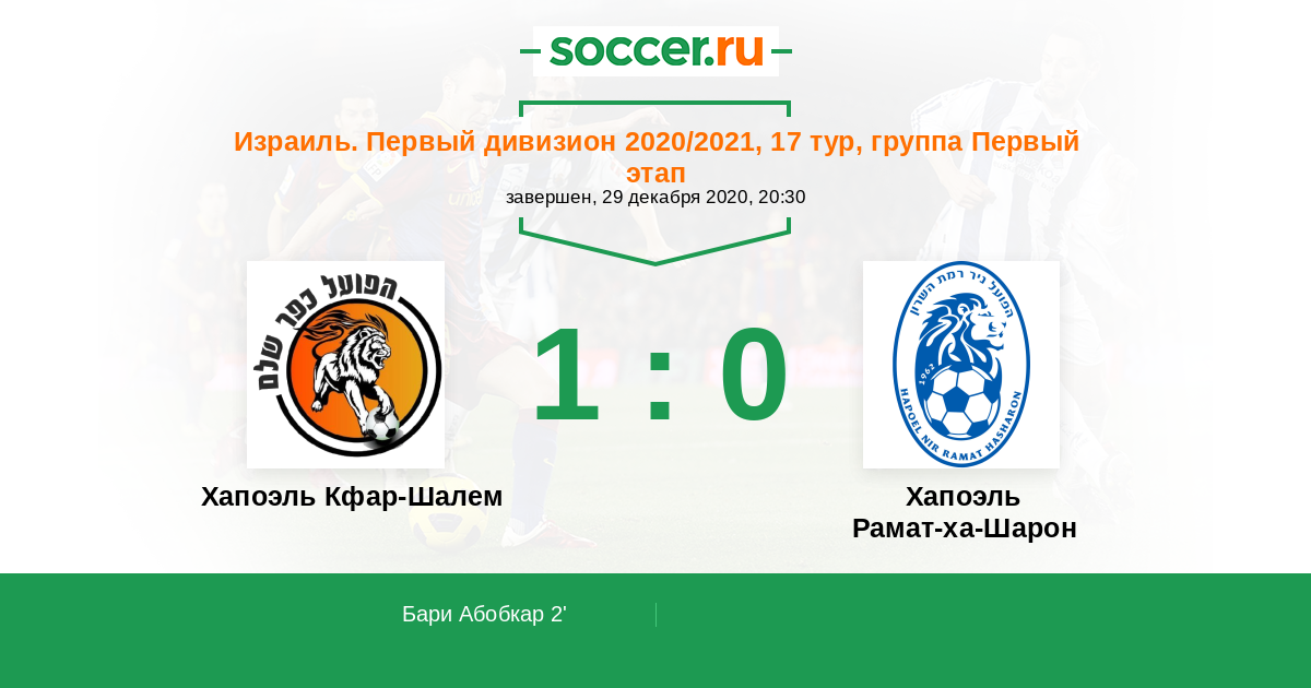 Протокол матча Хапоэль Кфар-Шалем против Хапоэль Рамат-ха-Шарон