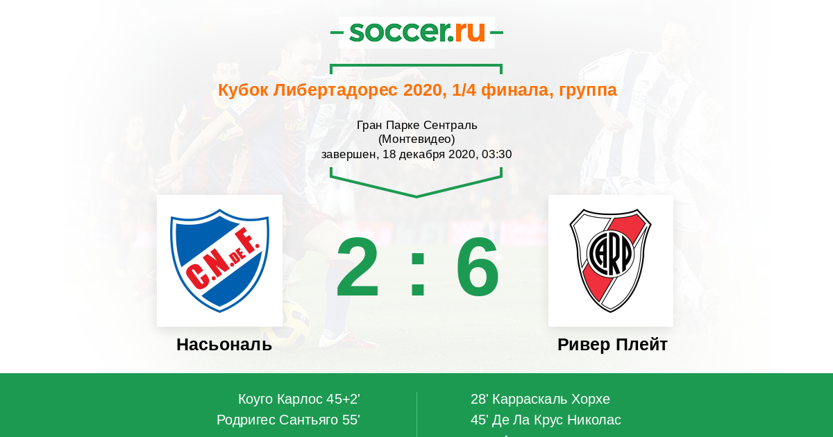 45' (0:2) Де Ла Крус Николас (11) (Суарес Матиас (7))