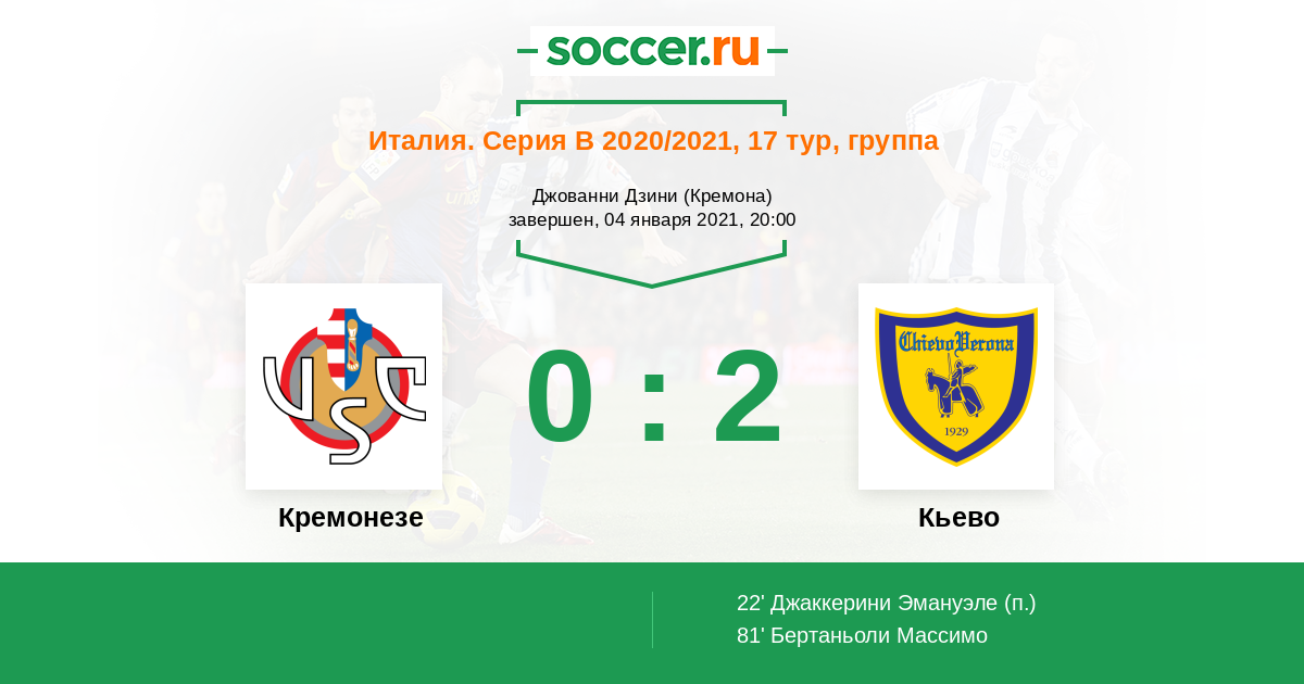 Протокол матча Кремонезе против Кьево
