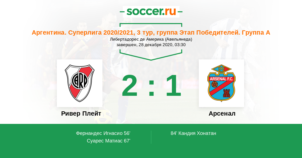 Протокол матча Ривер Плейт против Арсенал