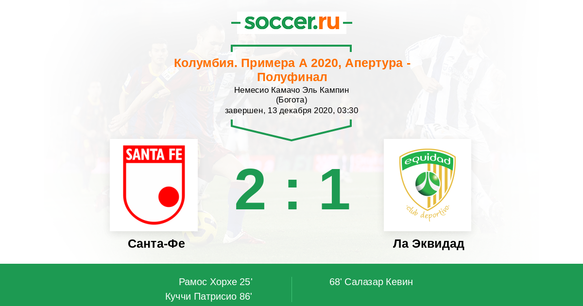 Протокол матча Санта-Фе против Ла Эквидад