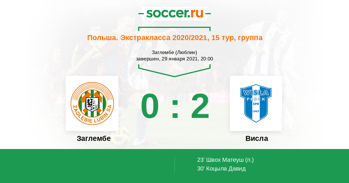 Протокол матча Заглембе против Висла