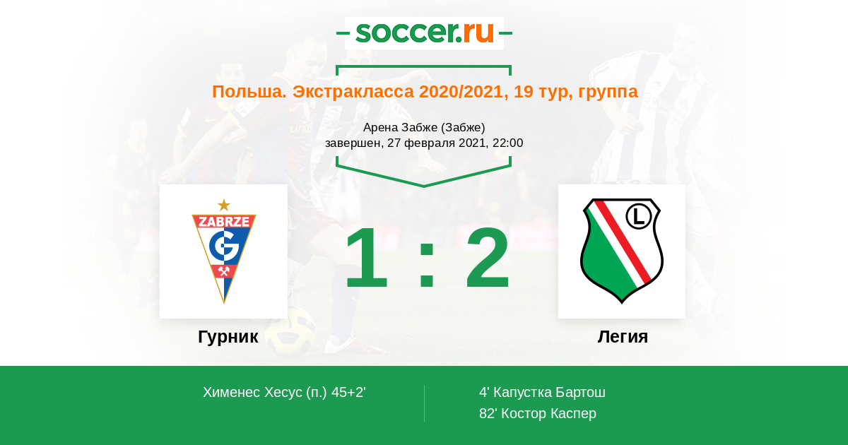 Протокол матча Гурник против Легия