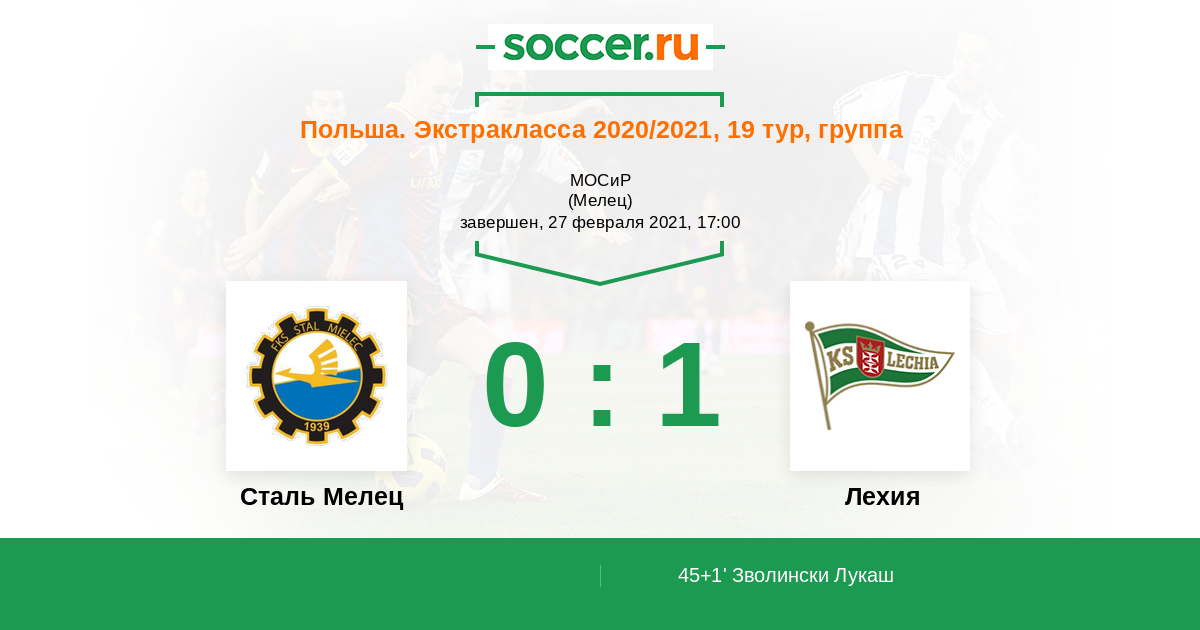 Протокол матча Сталь Мелец против Лехия