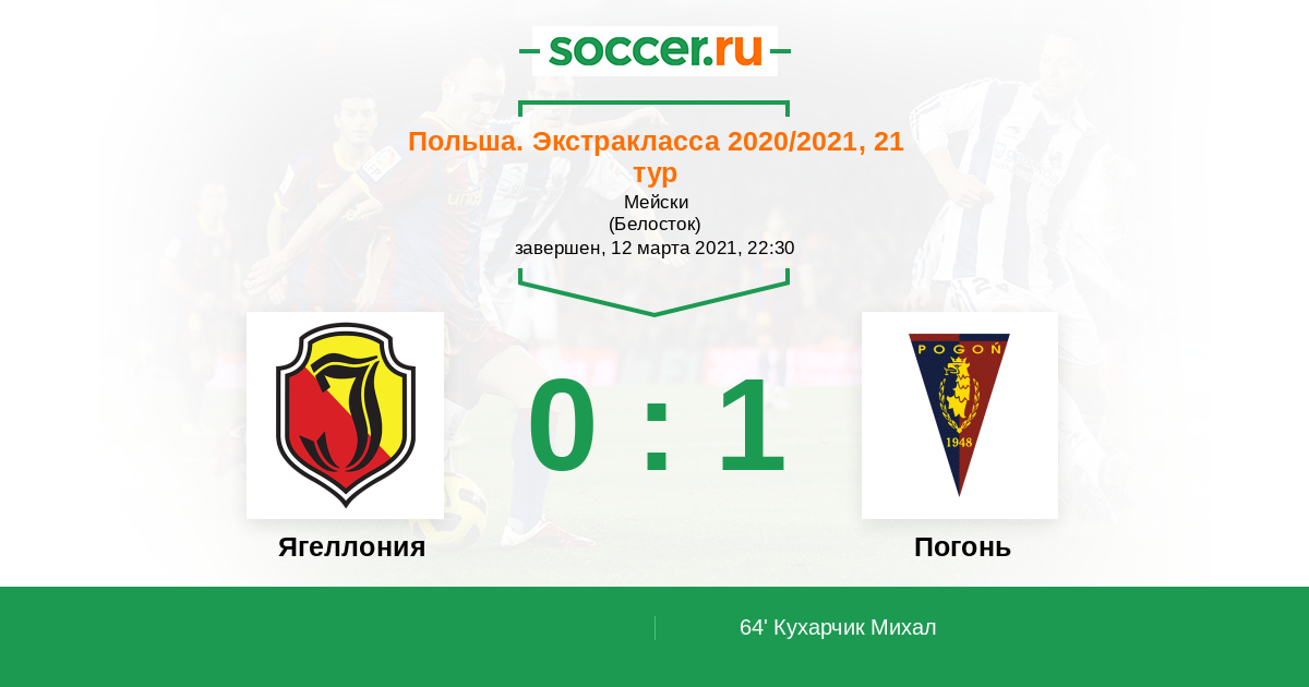Протокол матча Ягеллония против Погонь
