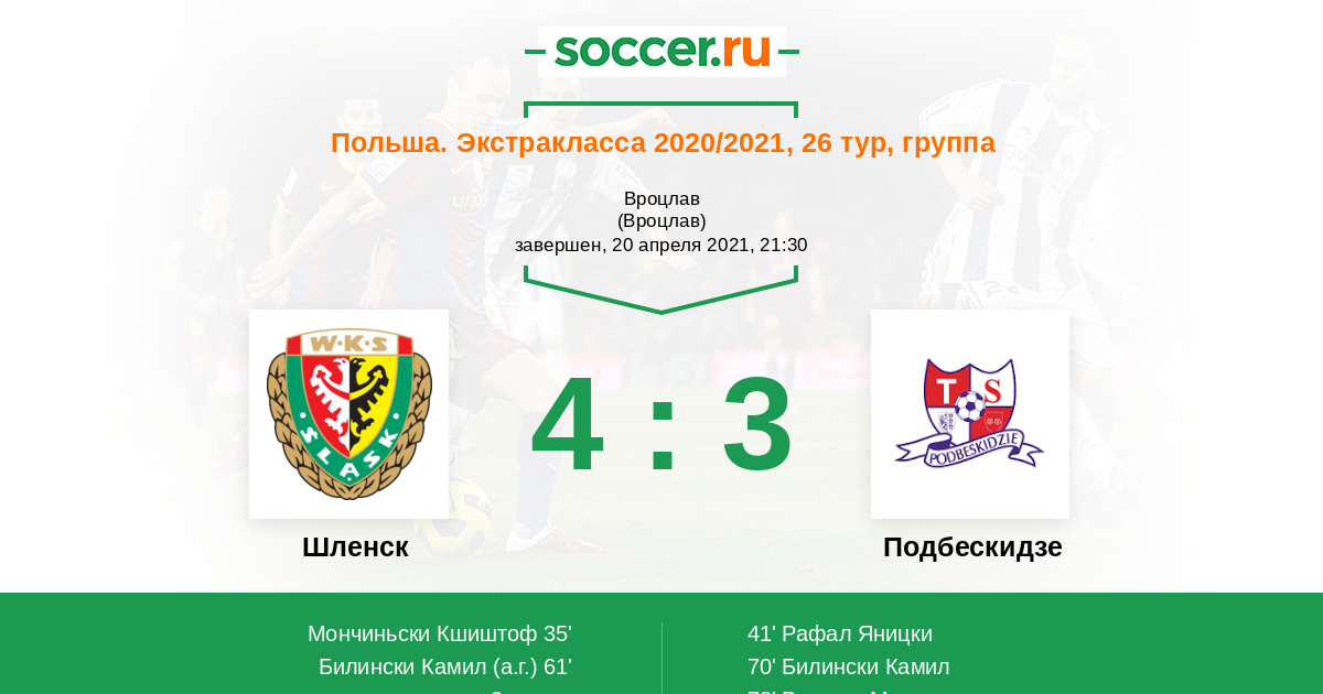 70' (2:2) Билински Камил (9) (Даньеляк Карол (8))