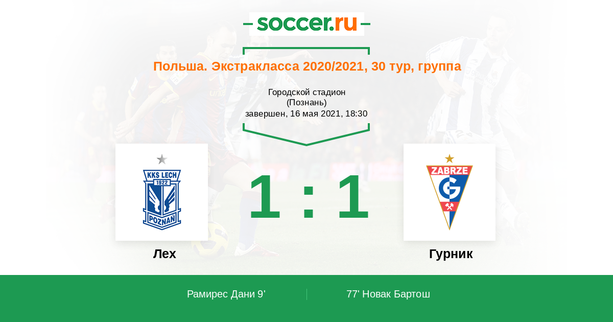 Протокол матча Лех против Гурник