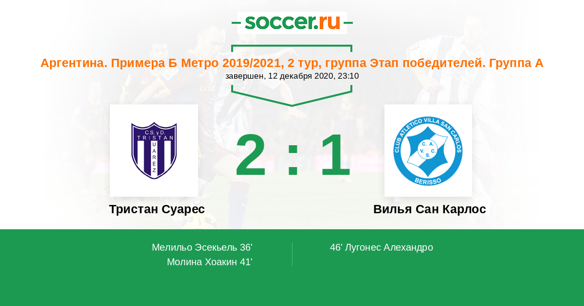 Протокол матча Тристан Суарес против Вилья Сан Карлос