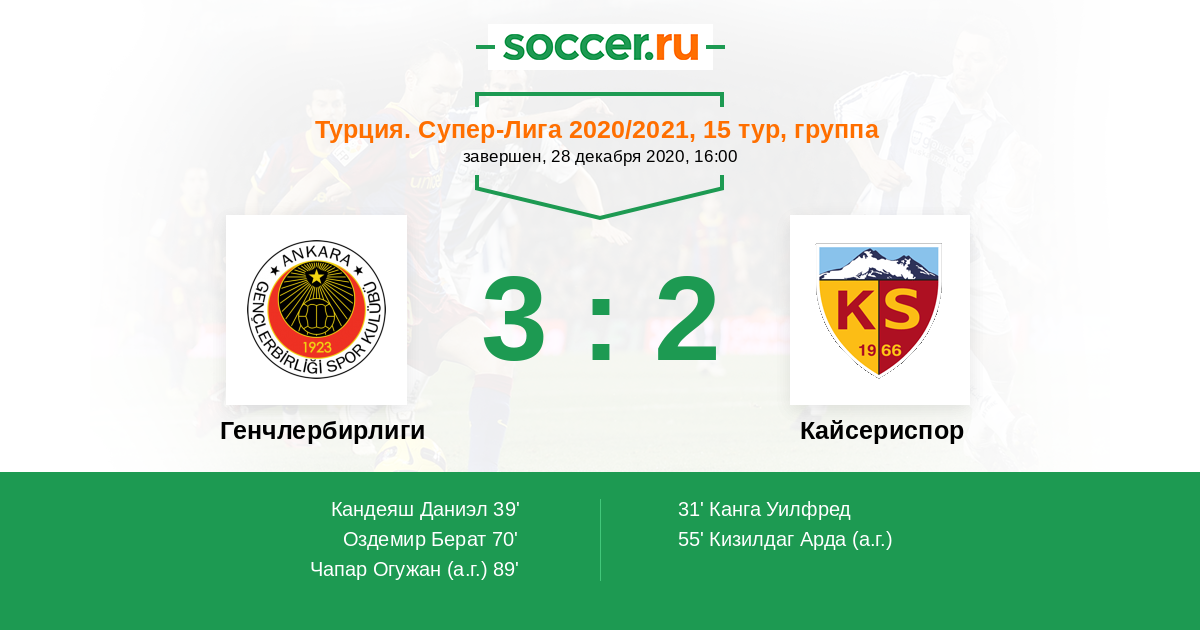 Протокол матча Генчлербирлиги против Кайсериспор