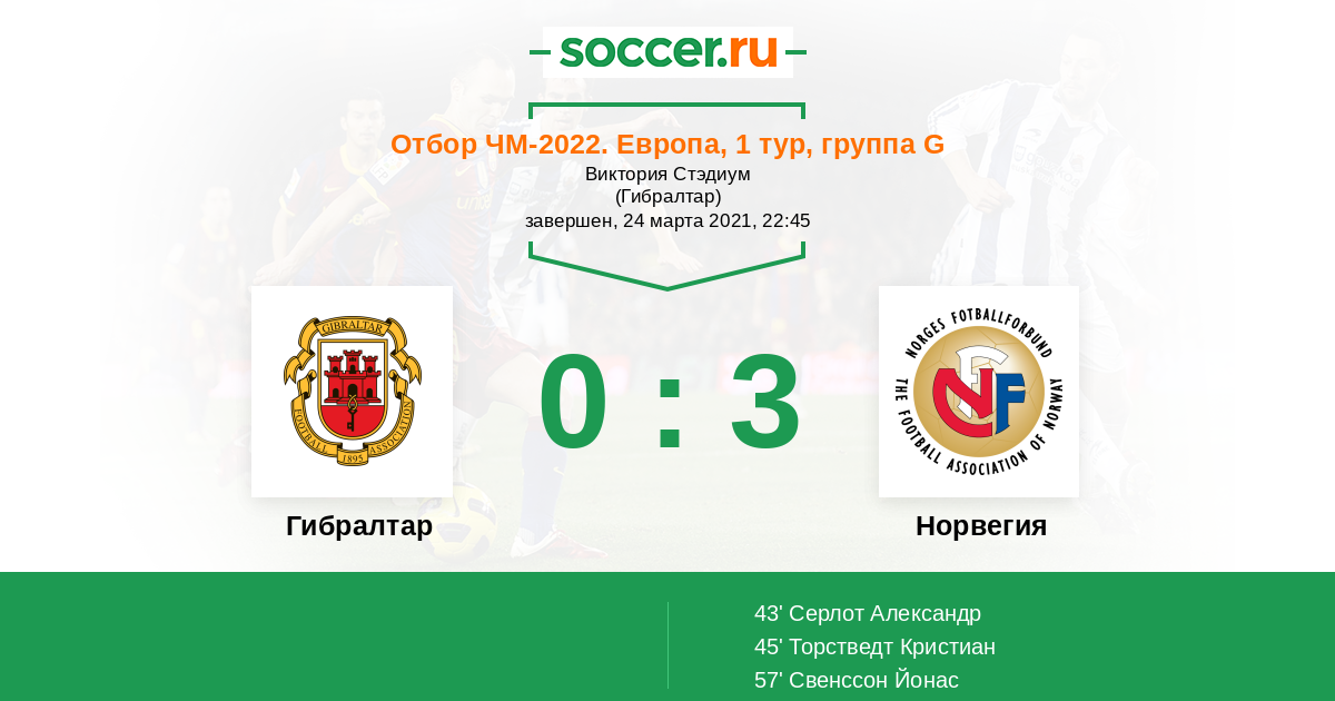 Протокол матча Гибралтар против Норвегия