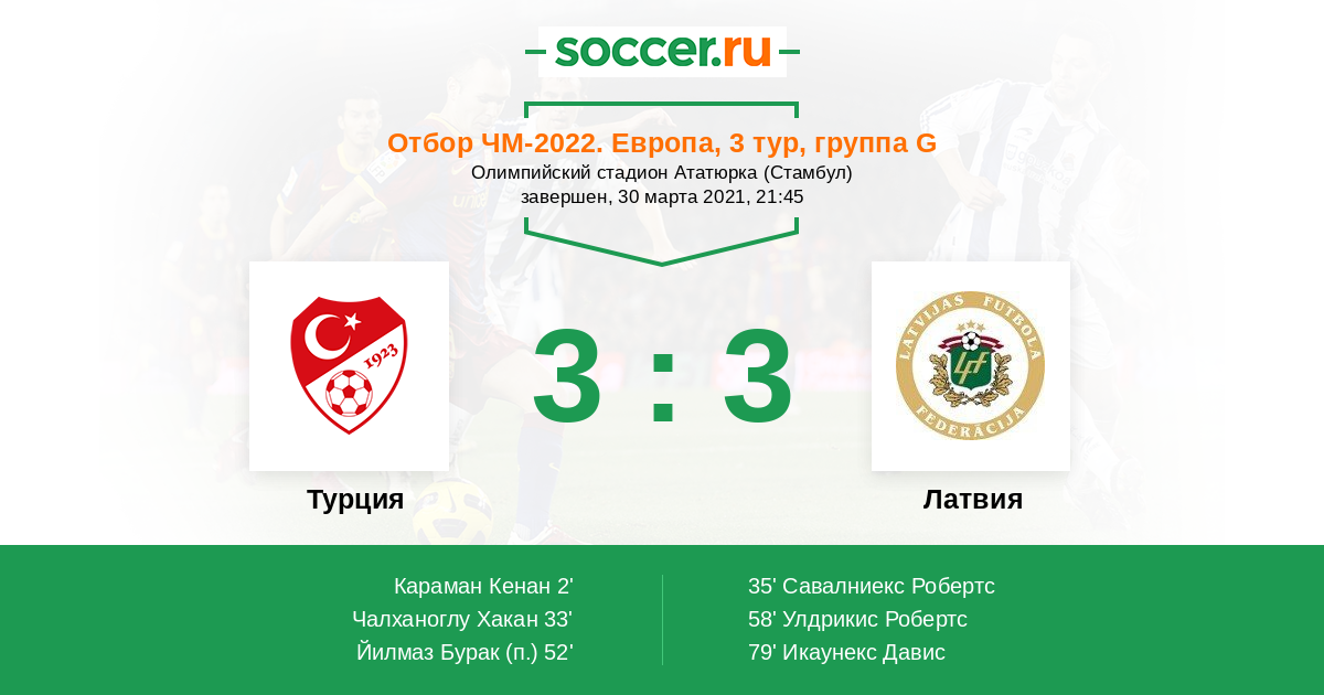 Турецкий тренер совсем ошибся с заменами. Заменил всю атакующую группу и оставил усталых защитников, вместо того, чтобы делать наоборот. В итоге латыши перестали запираться в обороне и пошли вперед.