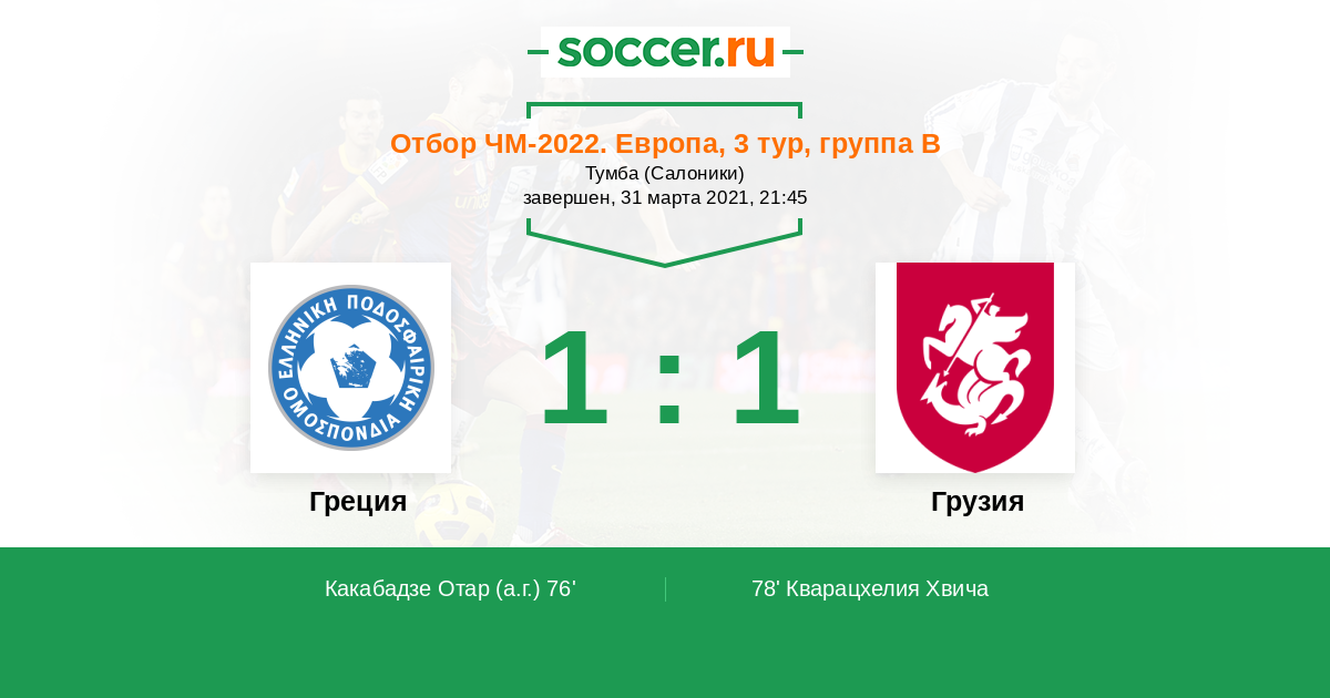 Протокол матча Греция против Грузия