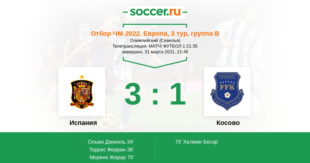 Протокол матча Испания против Косово