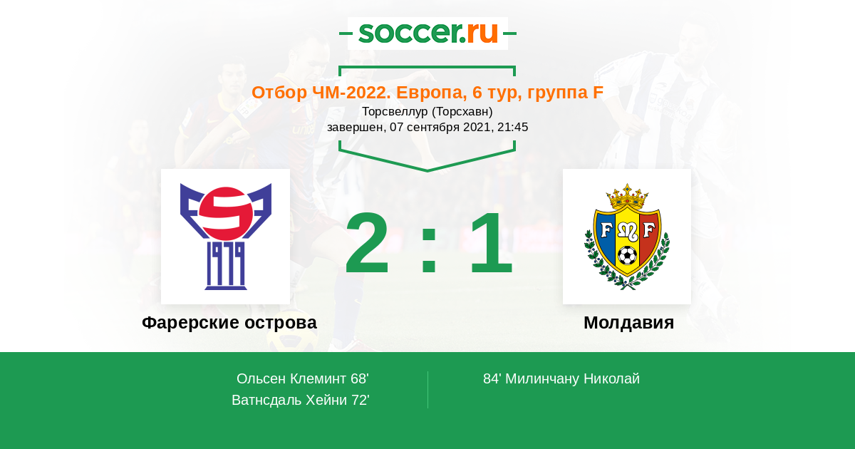 Протокол матча Фарерские острова против Молдавия