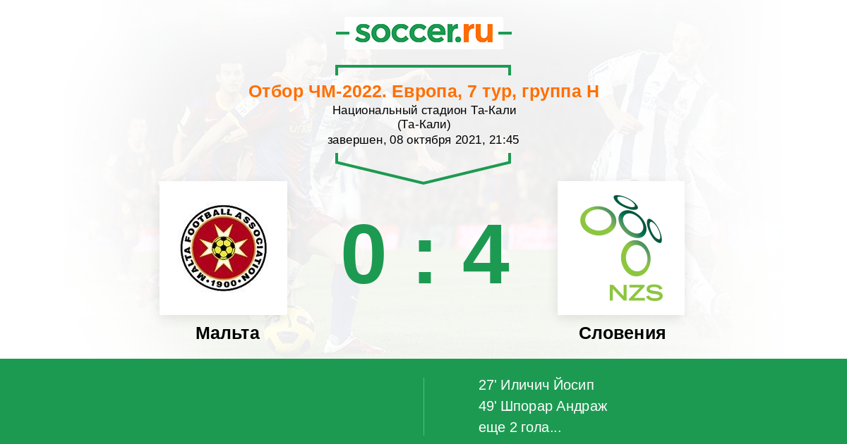 Протокол матча Мальта против Словения