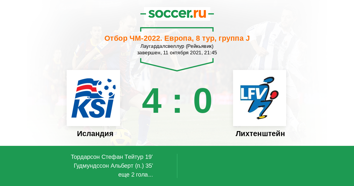 Протокол матча Исландия против Лихтенштейн