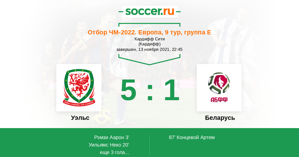 Как это, в Реале травмирован, а в сборной Уэльса играет? Надеюсь, что зимой Ньюкасл подпишет Гарета Бэйла и Эдена Азара. И у Ньюкасла именитые игроки будут для престижа клуба, и мадридскому Реалу хорошо будет, перед летними трансферами. По поводу этой игры, неужели у белорусской сборной всё настолько плохо, что они даже Уэльсу проигрывают с таким счётом?! Даже Рэмзи оформил дубль. А у Уэльса появляются хорошие шансы на попадание в стыковые матчи, после этого матча.