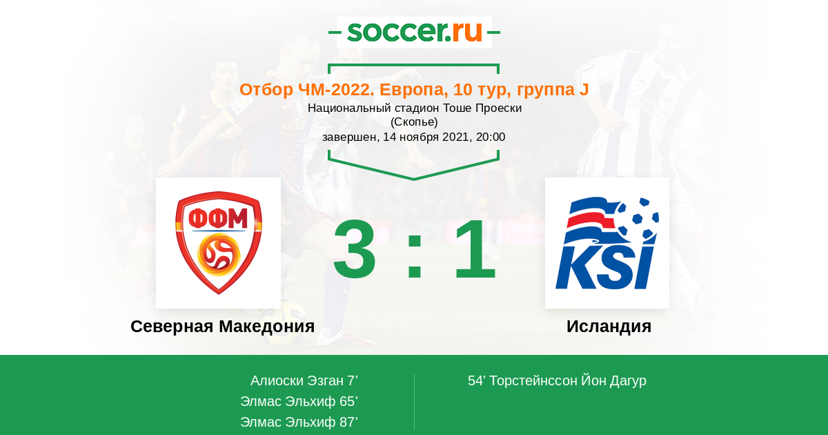 Протокол матча Северная Македония против Исландия