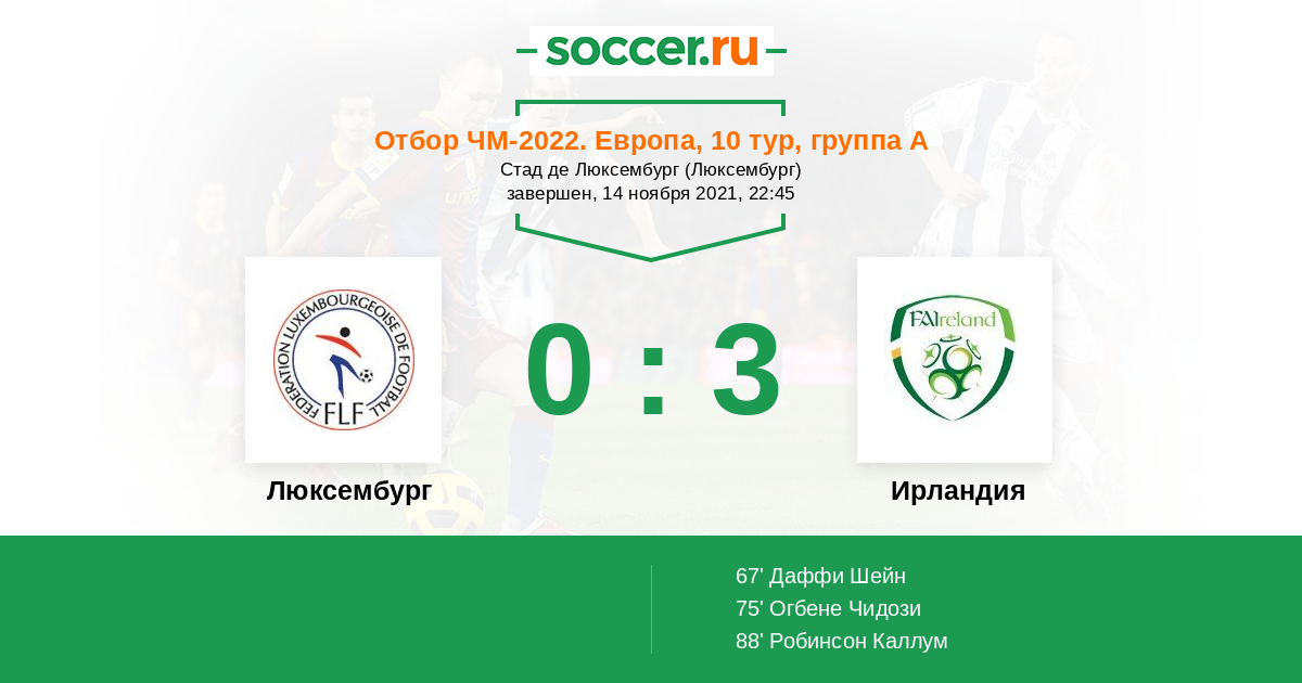 Протокол матча Люксембург против Ирландия