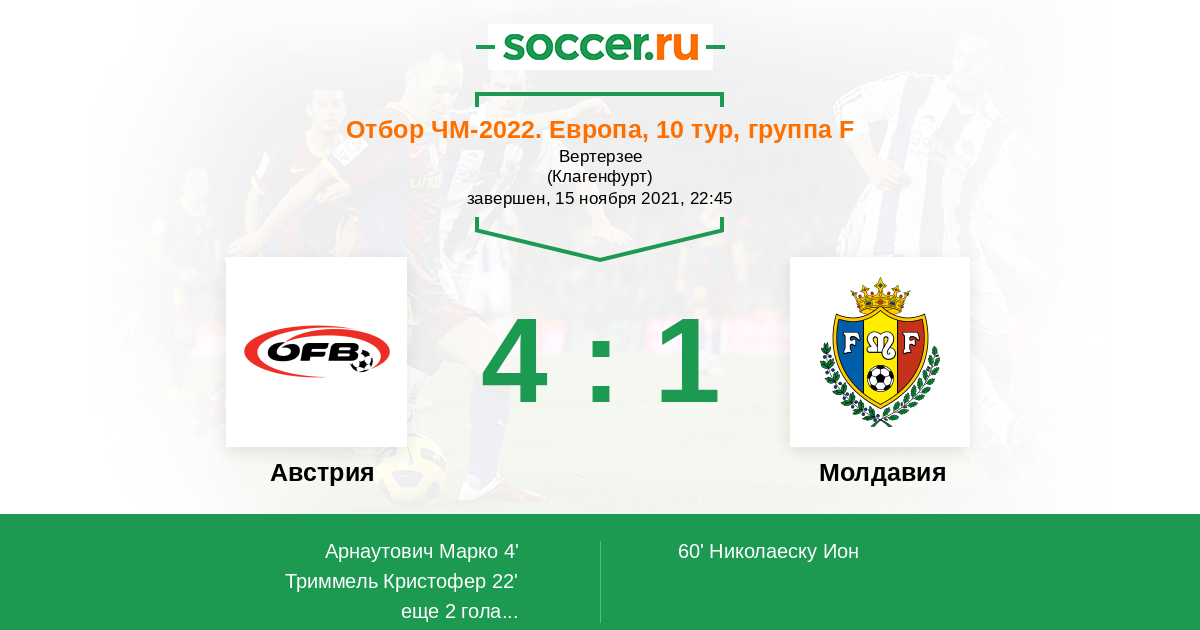 Австрия выиграла у Молдавии последние 5 матчей, причем 4 из них всухую. Полагаю и на этот раз не может быть иного результата кроме сухой победы Австрии и скорее всего разгромной.