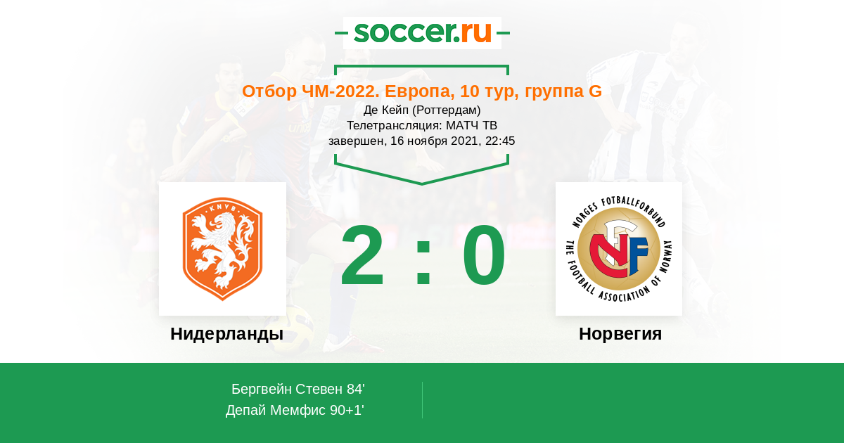 Норвежцы разочаровали завершением атак в матче с Латвией, а Нидерланды подвела их собственная расхлябанность на последних минутах игры с Черногорией. Голландцы еще не позволяли никому отбирать очки на своей земле в этой кампании, однако на сей раз придется играть при пустых трибунах. Если Мемфиса не выбьет из колеи трагическая история с участием его друга Раи Влута, лидер "оранжевых" должен помочь своим партнерам добыть необходимый результат.