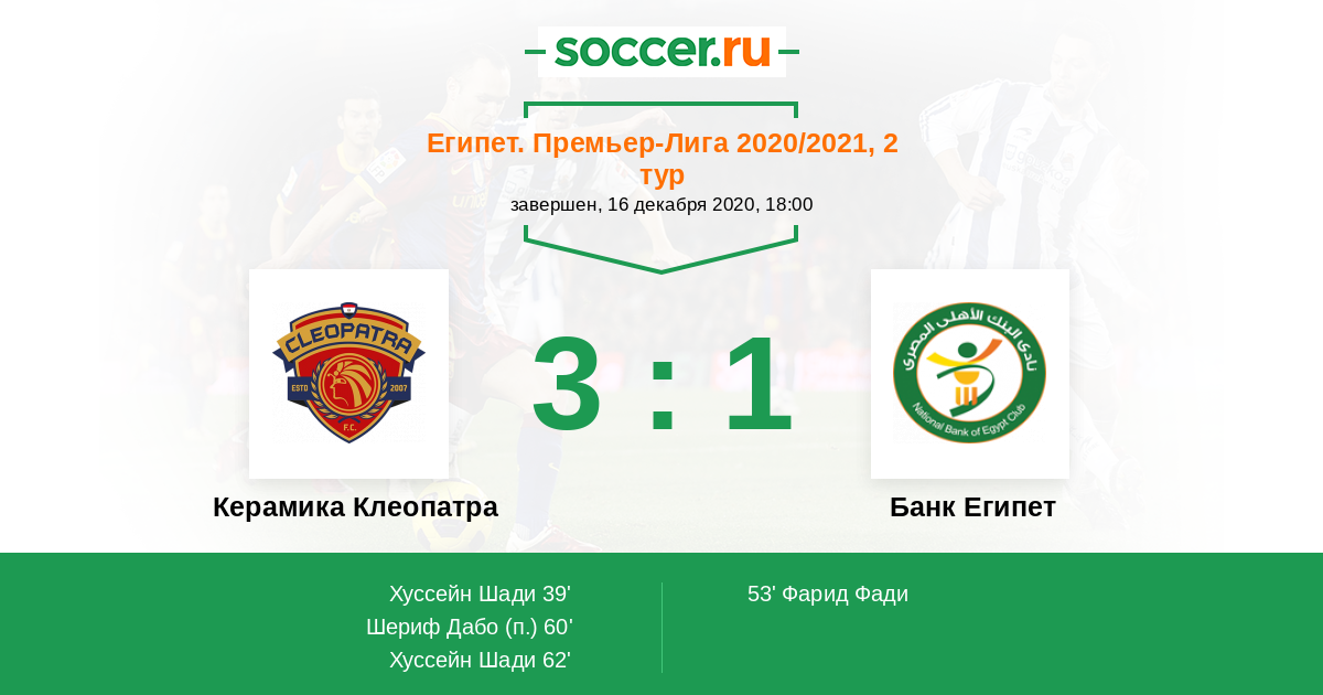 Протокол матча Керамика Клеопатра против Банк Египет