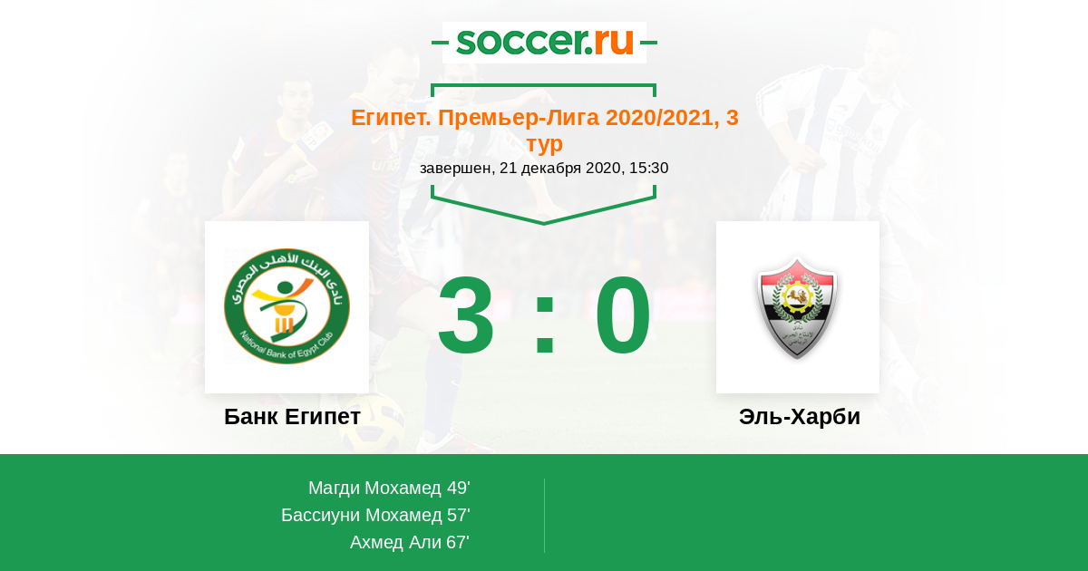 Протокол матча Банк Египет против Эль-Харби