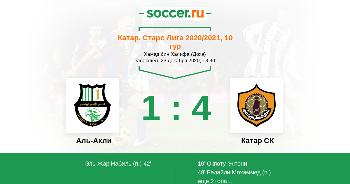 Протокол матча Аль-Ахли против Катар СК