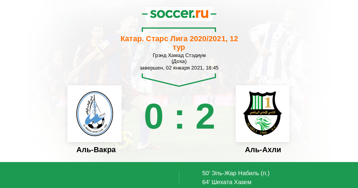 Протокол матча Аль-Вакра против Аль-Ахли
