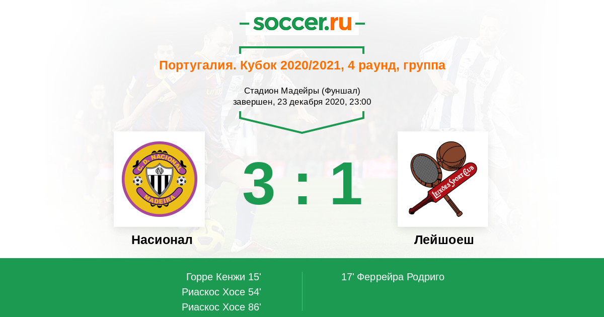 Протокол матча Насионал против Лейшоеш