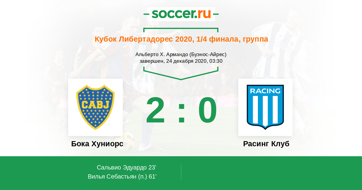 Протокол матча Бока Хуниорс против Расинг Клуб