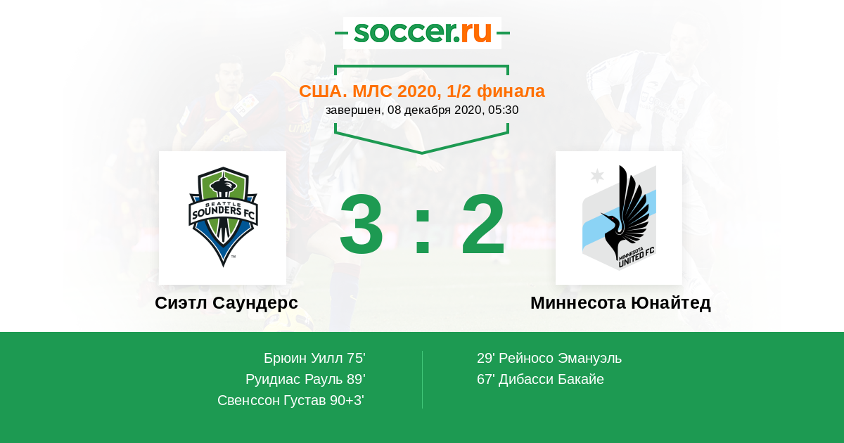 Протокол матча Сиэтл Саундерс против Миннесота Юнайтед