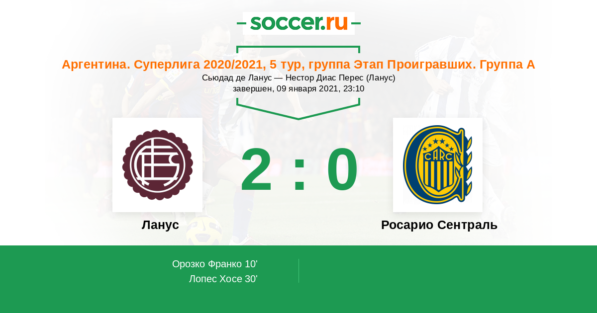 Протокол матча Ланус против Росарио Сентраль