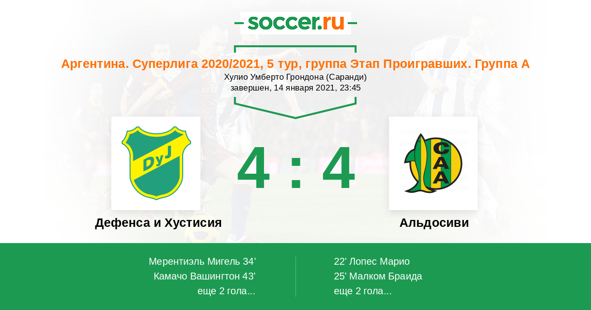 Протокол матча Дефенса и Хустисия против Альдосиви
