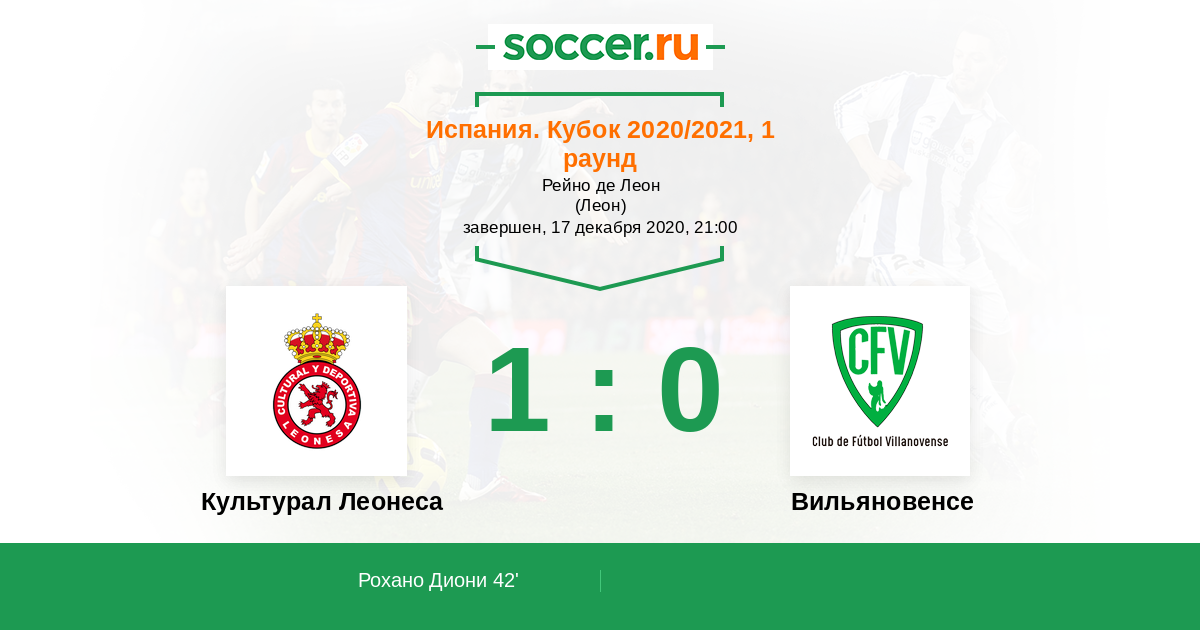Протокол матча Культурал Леонеса против Вильяновенсе