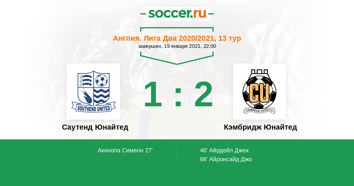 Протокол матча Саутенд Юнайтед против Кэмбридж Юнайтед