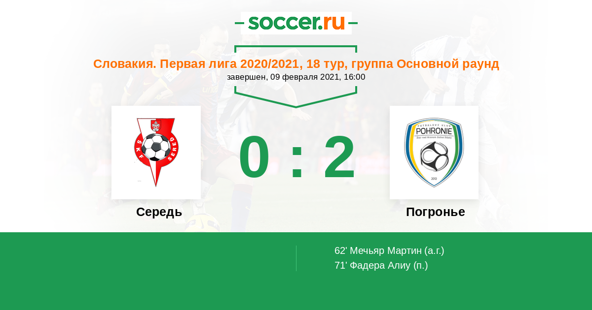 Протокол матча Середь против Погронье