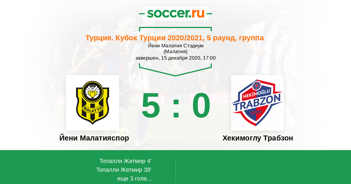 Протокол матча Йени Малатияспор против Хекимоглу Трабзон