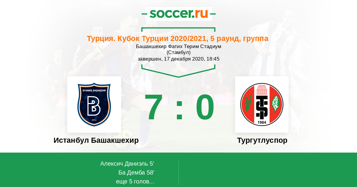 Протокол матча Истанбул Башакшехир против Тургутлуспор