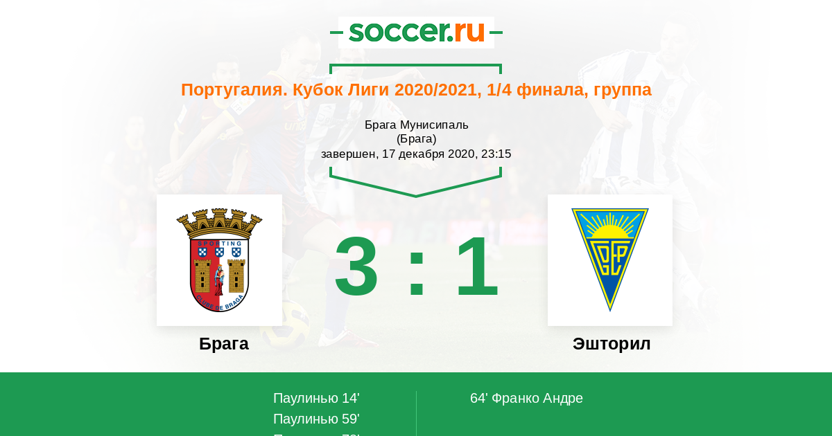 59' (2:0) Паулинью (20) (Эшгаю Рикарду (47))