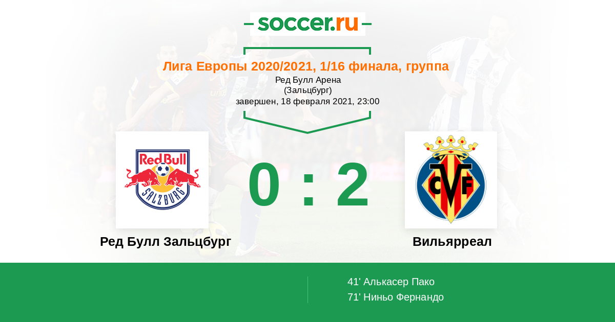Протокол матча Ред Булл Зальцбург против Вильярреал