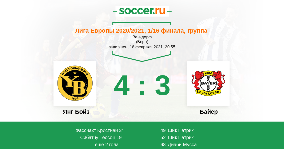 68' (3:3) Диаби Мусса (19) (Вирц Флориан (27))