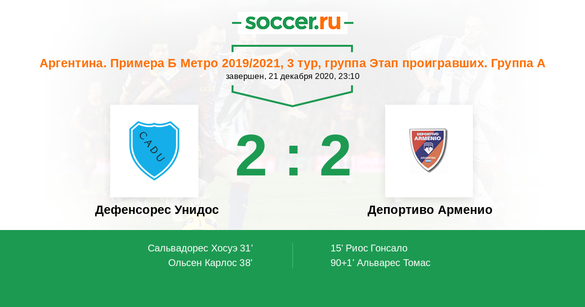 Протокол матча Дефенсорес Унидос против Депортиво Арменио