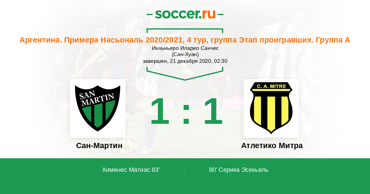 Протокол матча Сан-Мартин против Атлетико Митра
