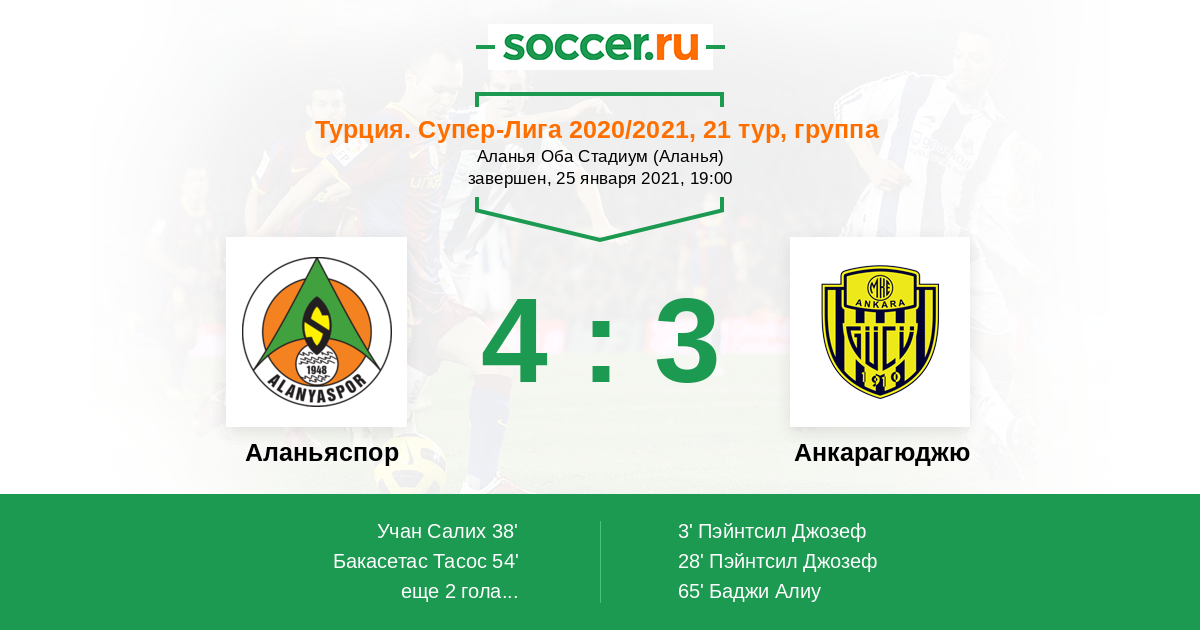 Протокол матча Аланьяспор против Анкарагюджю