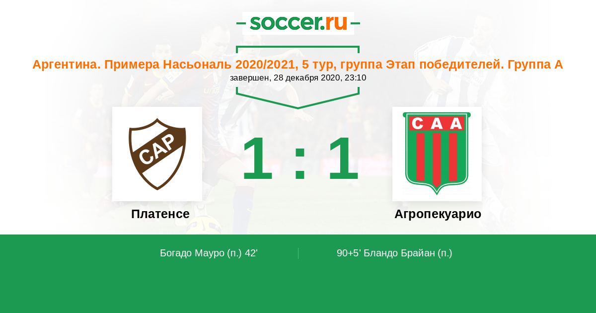 Протокол матча Платенсе против Агропекуарио