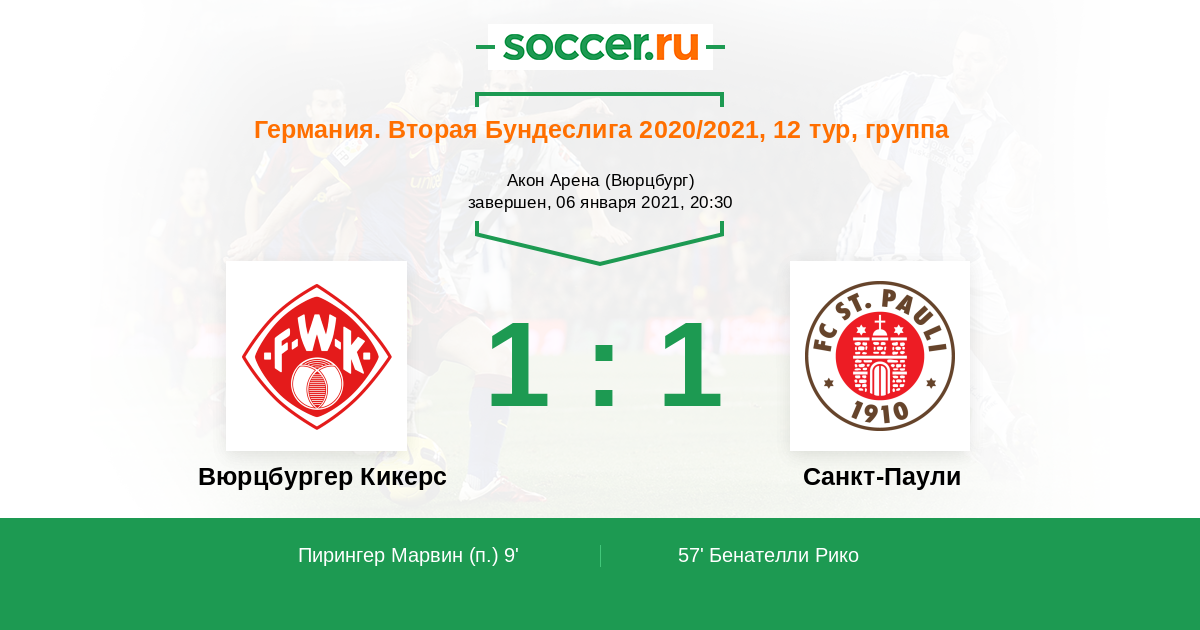 Протокол матча Вюрцбургер Кикерс против Санкт-Паули