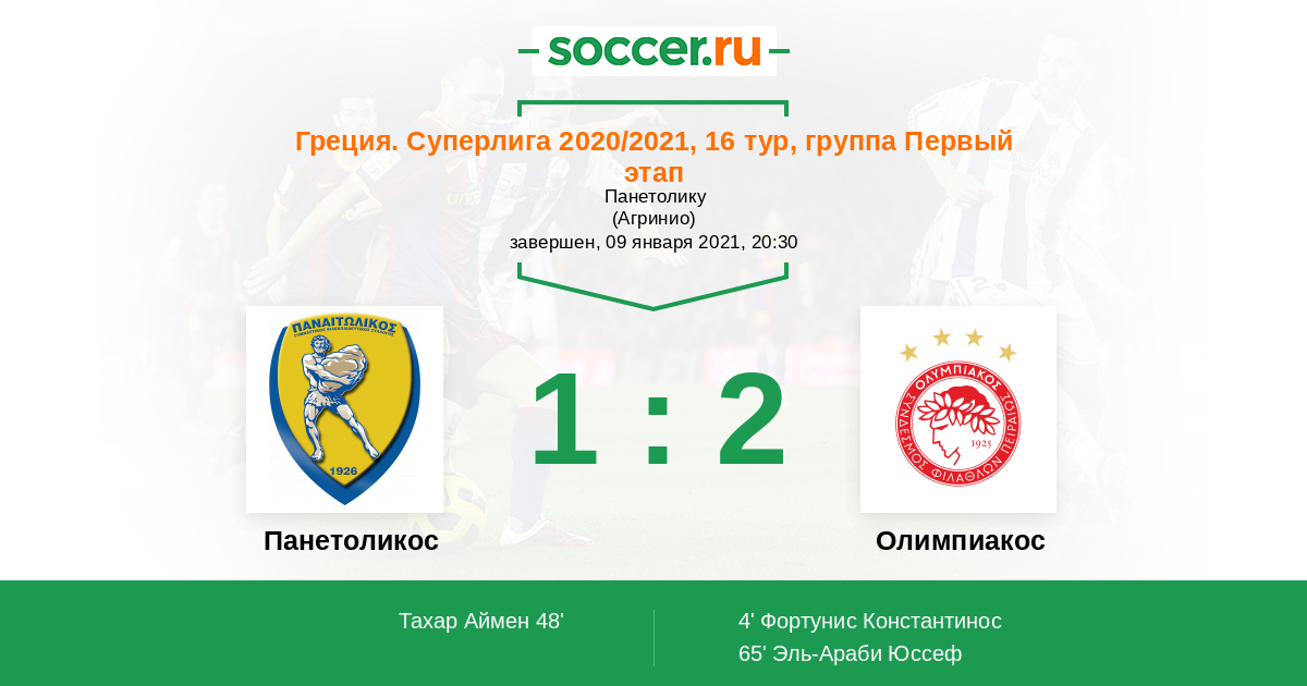 Протокол матча Панетоликос против Олимпиакос